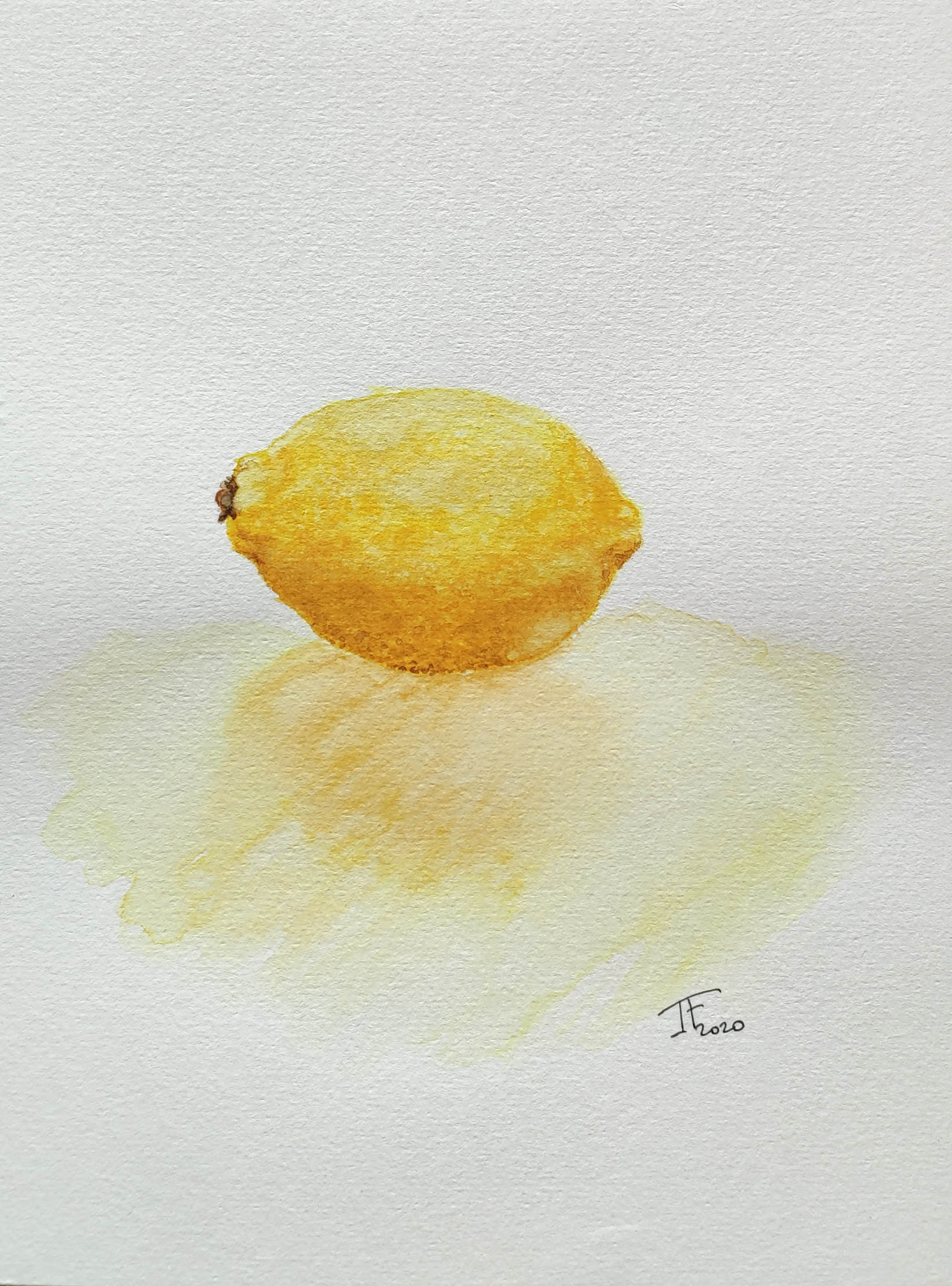 Cette aquarelle est une étude réalisée dans dessin préalable. La couleur est passée couche par couche pour amener le réalisme du citron.